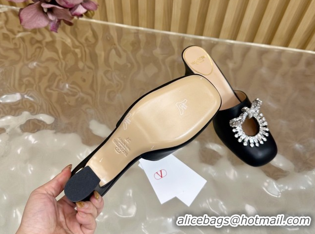Luxury Discount Valentino Strass Embellished Heel Mules 5.5cm in Calfskin Leather Black VLTN121509 51215120