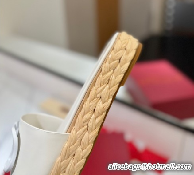 Luxury Valentino VLogo Calfskin Leather Flat Slides Sandal White 2025 VA082114 0821143