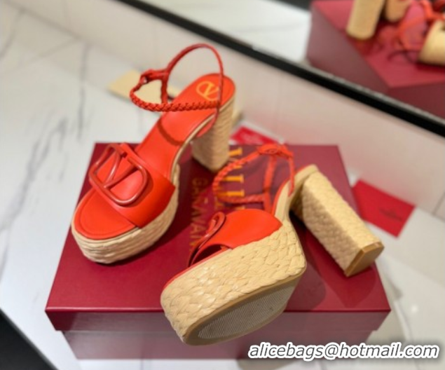 Luxury Valentino VLogo Calfskin Leather Platform Sandals 11.5cm Orange 2025 VA082112 0821123