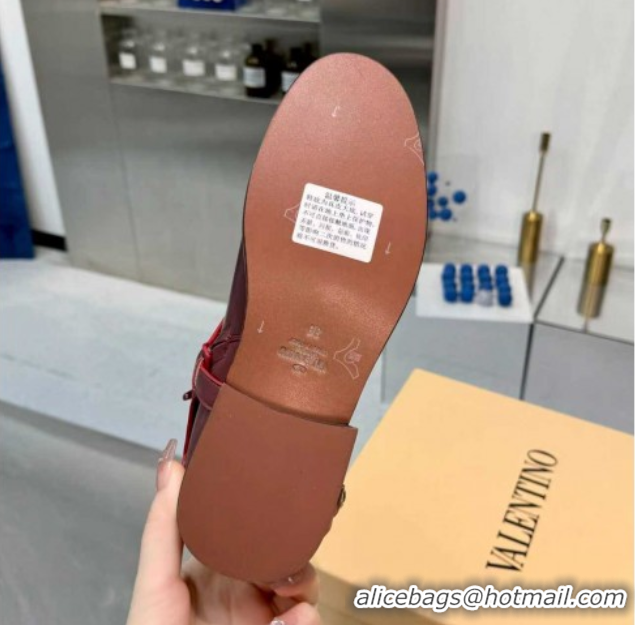 Luxury Valentino VLogo Signature Strap Flat Ankle Boots in Calfskin Leather Dark Burgundy 1104086