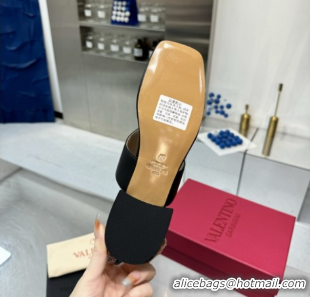 Luxury Valentino Vlogo Signature Flat Thong Slides Sandal in Calfskin Black 0902058