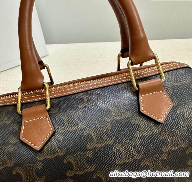 Market Sells Celine Small Boston Bag in Triomphe Canvas and Calfskin 113772 Tan Brown 2024