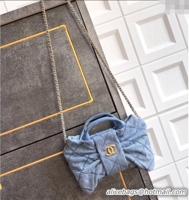 Market Sells Chanel Quilted Denim Mini Bow Bag AS5849 Light Blue 2025