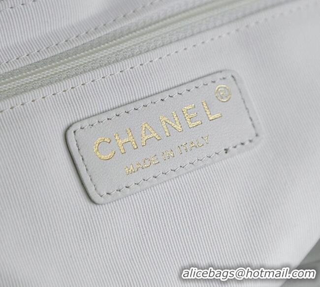 New Stylish Chanel Raffia Straw and Calfskin Small Shopping Bag AS5951 White/Beige 2025