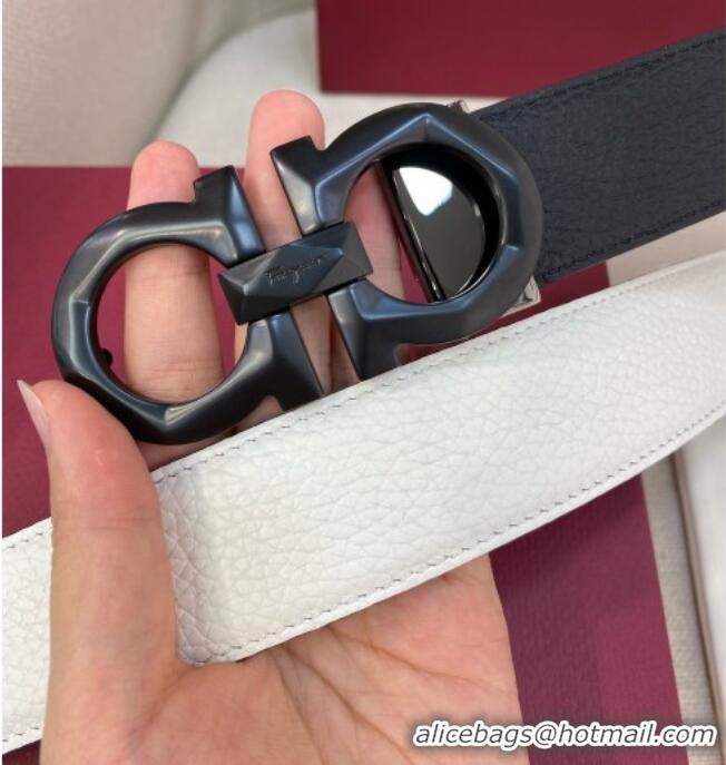 Market Sells Ferragamo Belt 3.5cm in Reversible Litchi-Grained Leather 0615 Black/White/Matte Black