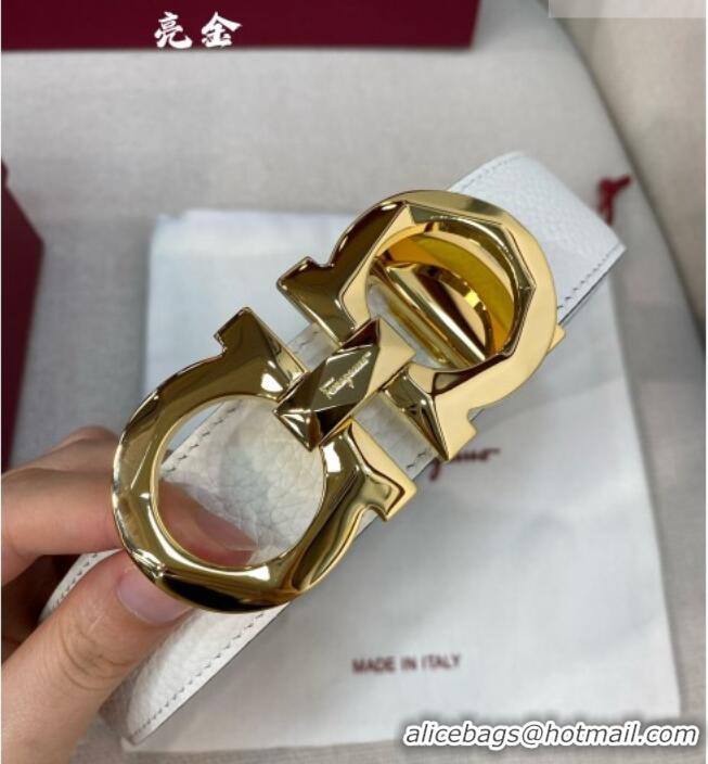 New Fashion Ferragamo Belt 3.5cm in Reversible Litchi-Grained Leather 0615 Black/White/Shiny Gold