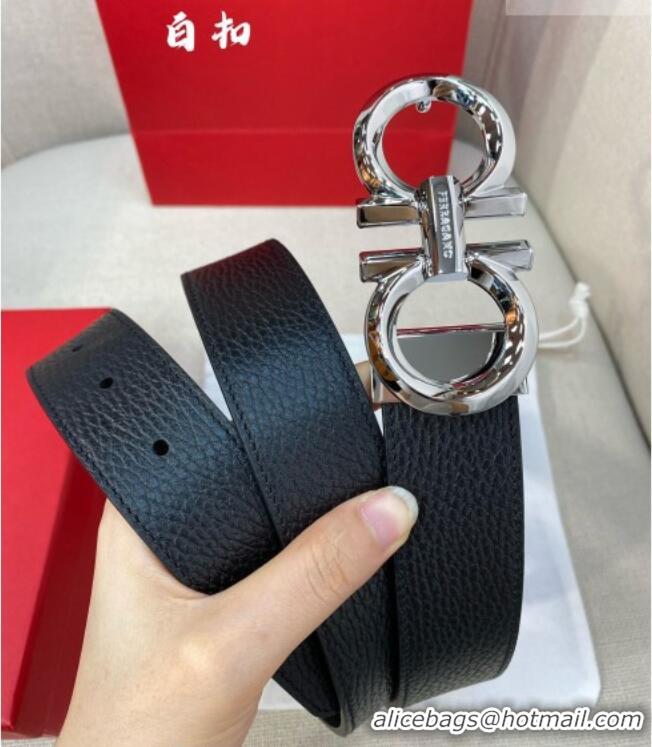 Best Product Ferragamo Belt 3.5cm in Reversible Litchi-Grained and Smooth Leather 0615 Black/Shiny Silver