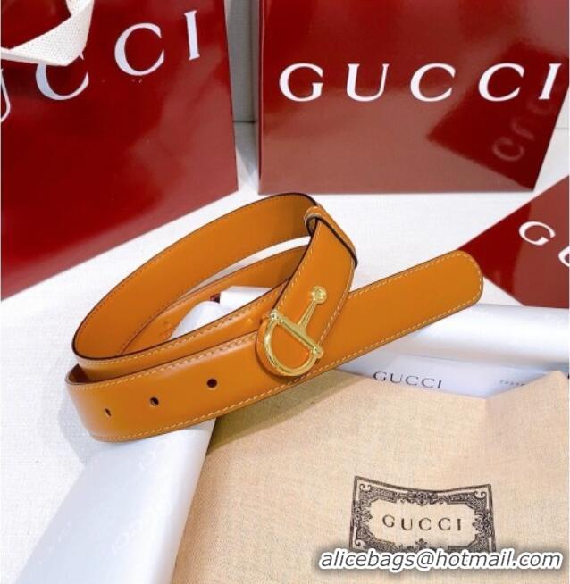 Famous Brand Gucci Thin Belt 2.5cm with Half-Horsebit Buckle in Leather 0912 Yellow/Gold 2025