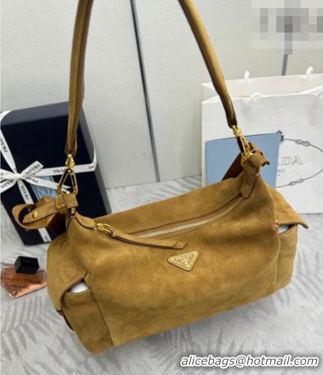 Top Grade Prada Explore large suede shoulder bag 1BC264 Cinnamon Brown 2025
