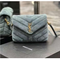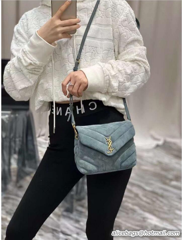 Market Sells Yves Saint Laurent LOULOU SMALL BAG IN Y-QUILTED SUEDE 77761 blue