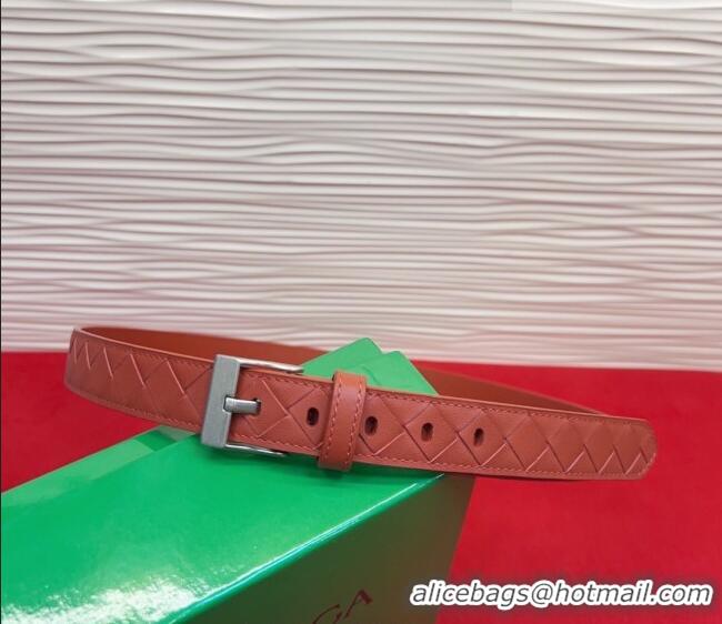 Modern Classic Bottega Veneta Intrecciato Leather Belt 2cm with Pin Buckle BV26010404 Orange/Silver 2025