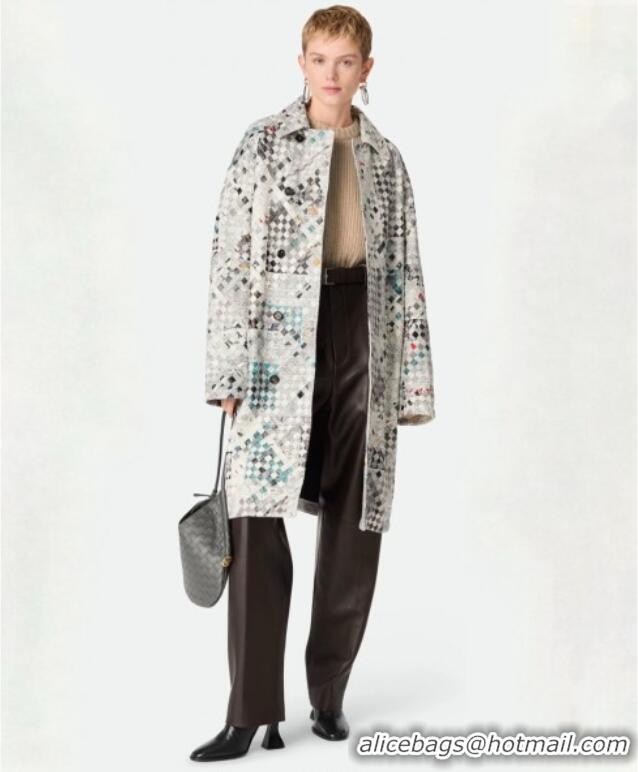Modern Classic Bottega Veneta Printed Intrecciato Lambskin Leather Coat 0814 Grey 2025
