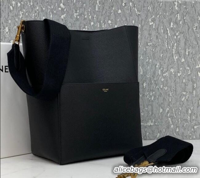 Luxury Discount Celine Seau Sangle Medium Bucket Bag in Supple Grained Calfskin 180543 Black 2024