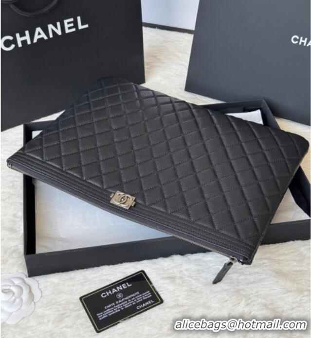 > Chanel Handbag > Chanel 2025 Bags > Modern Classic Chanel Grained Calfskin Leboy 2.55 Large Pouch 9847 Black/Silver 2025