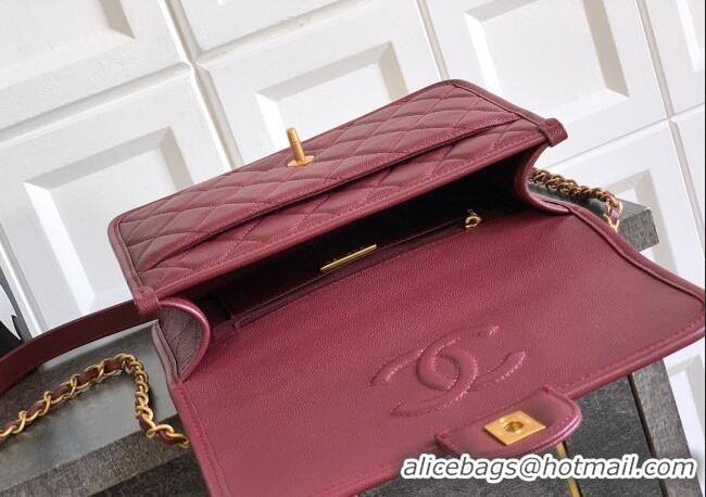 Modern Classic Chanel Grained Shiny Calfskin Flap Bag with Top Handle Bag AS3653 Burgundy 2025