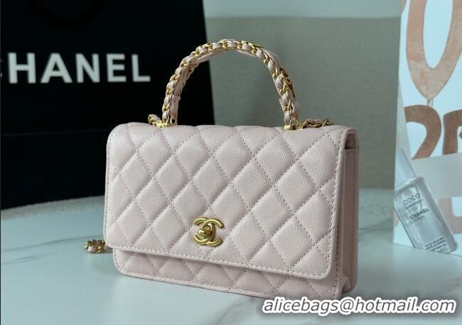 Modern Classic Chanel Grained Shiny Calfskin Wallet on Chain with Top Handle WOC AP4785 Light Pink 2025