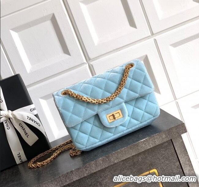 Best Quality Chanel Velvet Mini 2.55 Flap Handbag AS0874 Ice Blue 2025