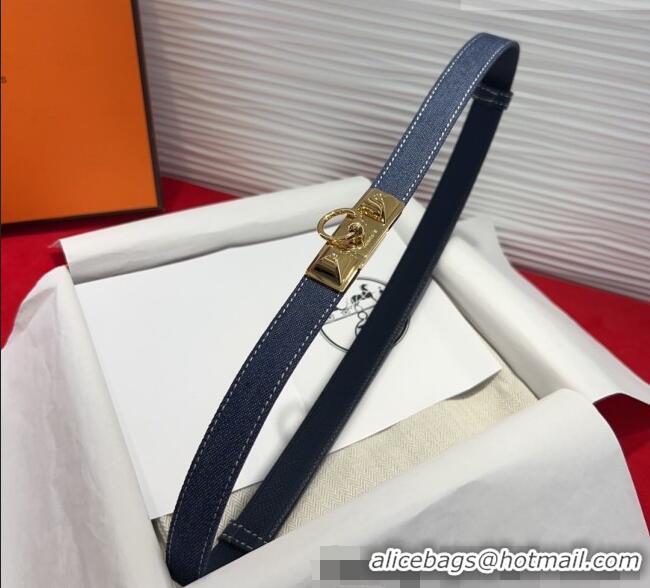 Best Quality Hermes Rivale Denim Belt 1.8cm with Two Medor and Ring Buckle 8190 Navy Blue/Gold 2025