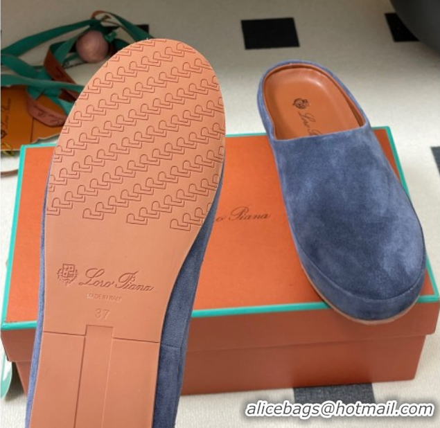Modern Loro Piana Tomori Sabot Flat Mules in Suede Blue 0827008