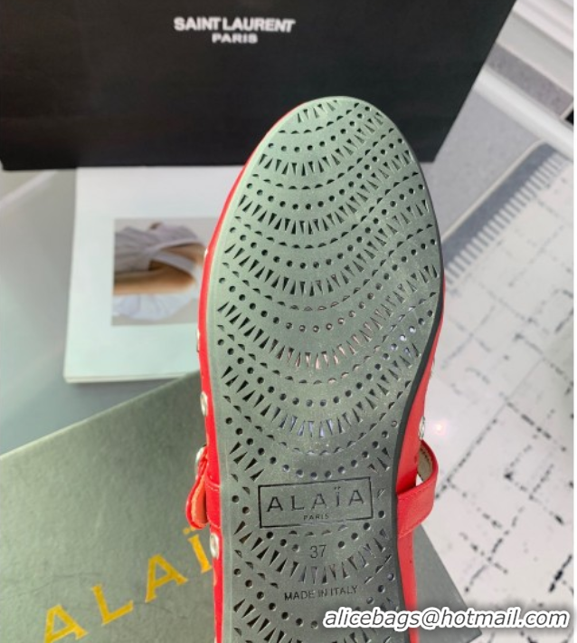 Most Popular Alaia Ballet Flat in Openwork Leather with Eyelet Red 1223011