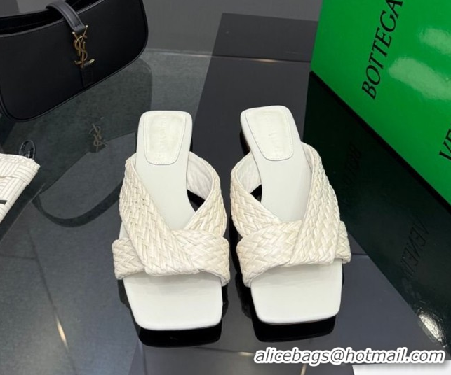 Popular Style Bottega Veneta Riva Flat Slides Sandal in Braided Straw 861494 White 2026