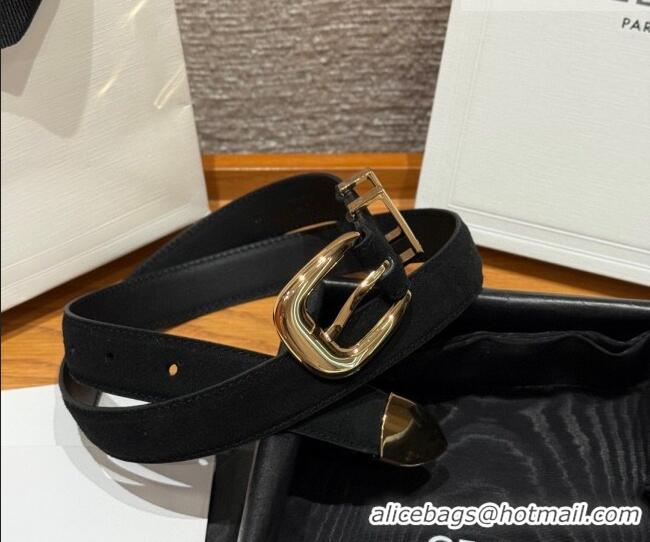 Grade Quality Celine Triomphe Medium Belt 2.5cm with Pin Buckle in Suede CE031604 Black/Gold 2026