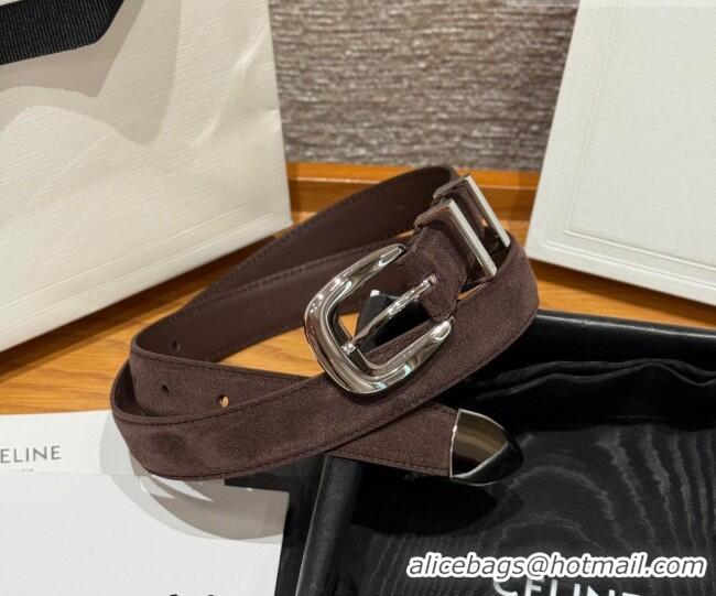 Most Popular Celine Triomphe Medium Belt 2.5cm with Pin Buckle in Suede CE031604 Dark Brown/Silver 2026