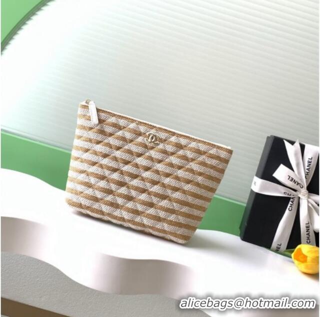 Most Popular Chanel Striped Printed Fabric Zipped Case AP4989 Beige 2026