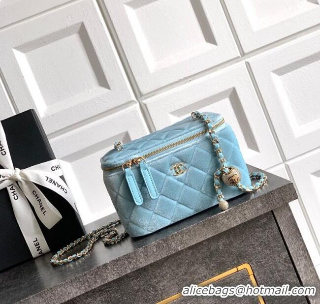 New Product Chanel Velvet Vanity Case with Chain and Strass Ball CH101007 Ice Blue 2025