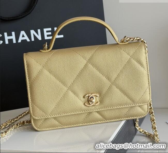 Most Popular Chanel Wallet On Chain with Top Handle Grained Shiny Calfskin AP4931 Gold 2026