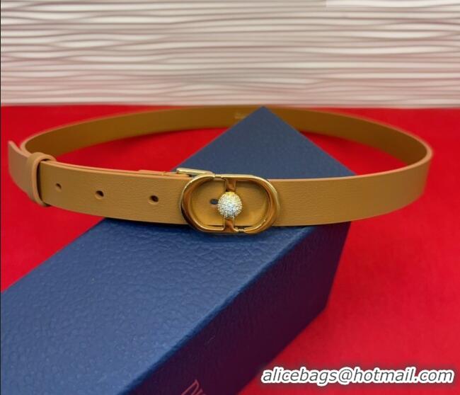 Most Popular Dior Calfskin Leather Belt 2cm with Strass CD Buckle 1231 Brown/Gold 2025