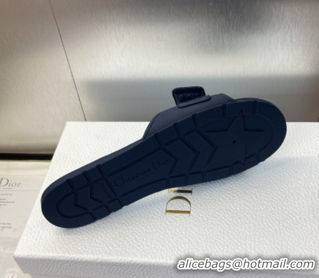 Pretty Style Dior Dioriviera Dioract Flat Slides Sandal in Lambskin and Rubber Deep Blue 0822038