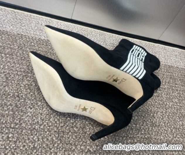 Charming Dior Optical-D Heel Ankle Boots 8cm with Graphique Motif in Suede Black 0822052