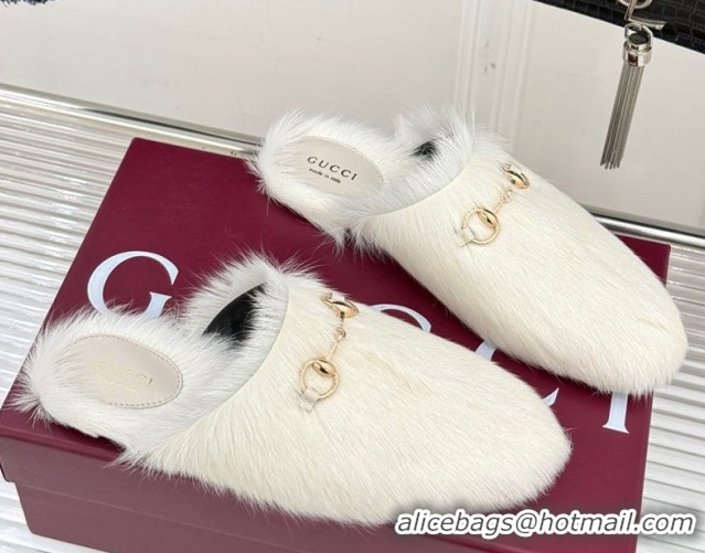 Top Grade Gucci Wool Flat Mules with Horsebit White 1020045