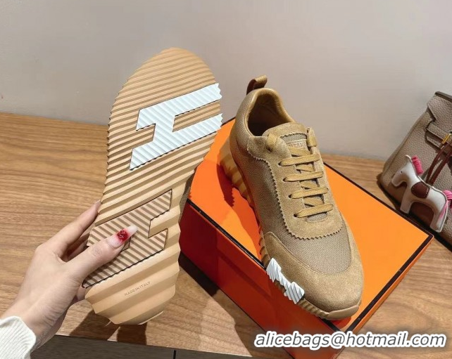 Durable Hermes Bouncing Sneakers in Cotton Canvas and Suede Brown/Grey 1222078 2026