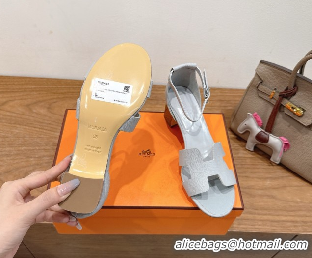 Your Position: Home > Shoes Plaza > Hermes Shoes > Most Popular Hermes Encens Heel Sandals 5cm in Epsom Calfskin Light Grey H082012 0820182