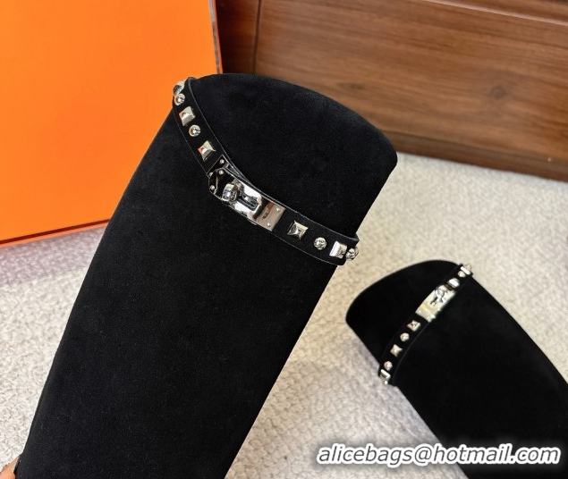Most Popular Hermes Jumping High Flat Boots in Suede with Studded Kelly Buckle Strap Black 1220023 2026