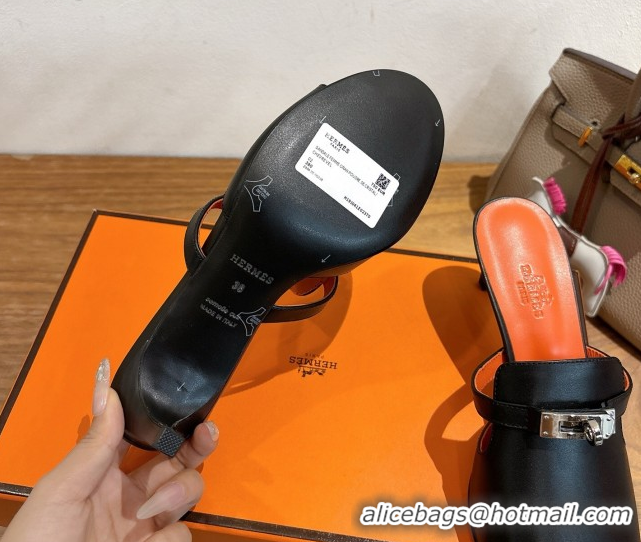 Most Popular Hermes Kelly Strap Medium Heel Slides Sandal in Calfskin Leather Black/Orange HS122201 2026