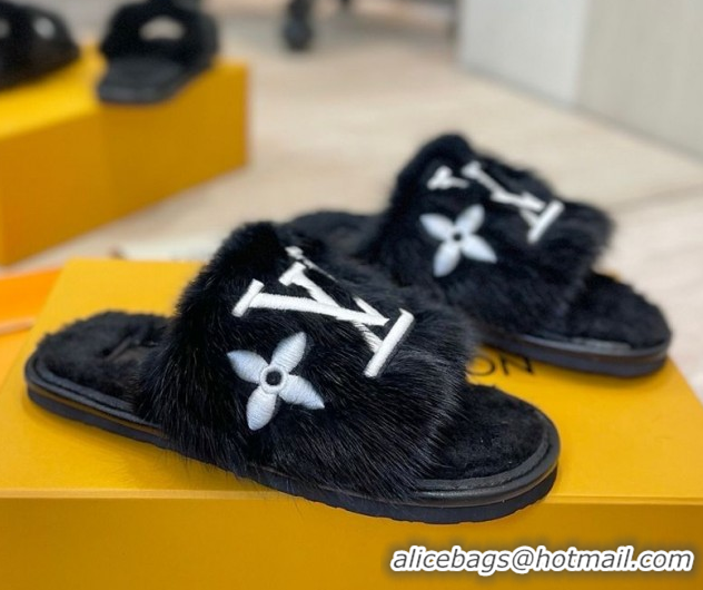 Most Popular Louis Vuitton Mink Fur and Wool Flat Slides Sandal Black LV102207 1022131