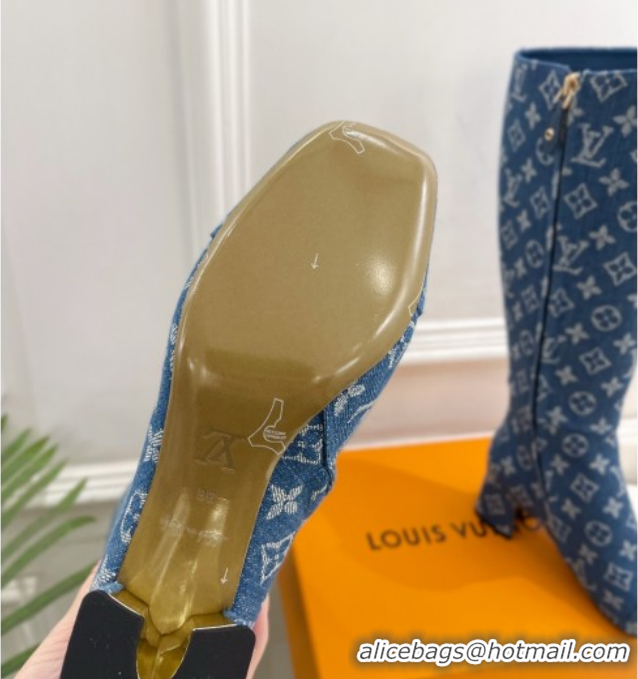 Best Price Louis Vuitton Swing Heel High Boots 5.5cm in Blue Monogram Denim 1AID09 1021113