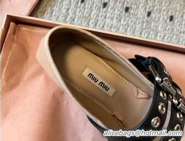 Top Grade Miu Miu Nappa and Calf Leather Ballerinas Flat with Double Buckle and Laces Beige 5F466A 102504 2025
