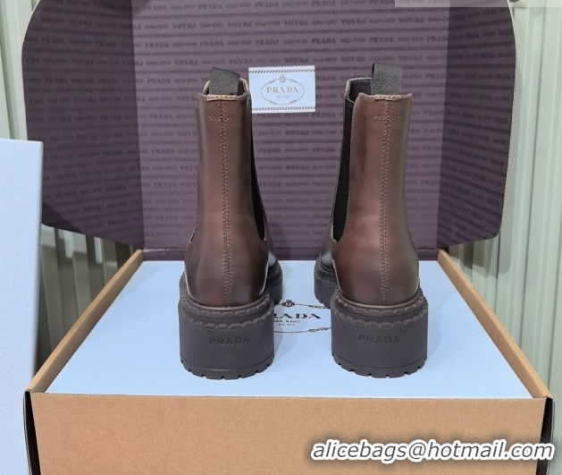 Unique Style Prada Double Chocolate Calf Leather Chelsea Boots 5cm 1T744N Dark Brown 2026