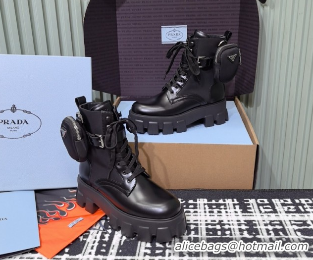 Classic Prada Monolith leather and Re-Nylon combat boots with pouch 1T255M Black 2026