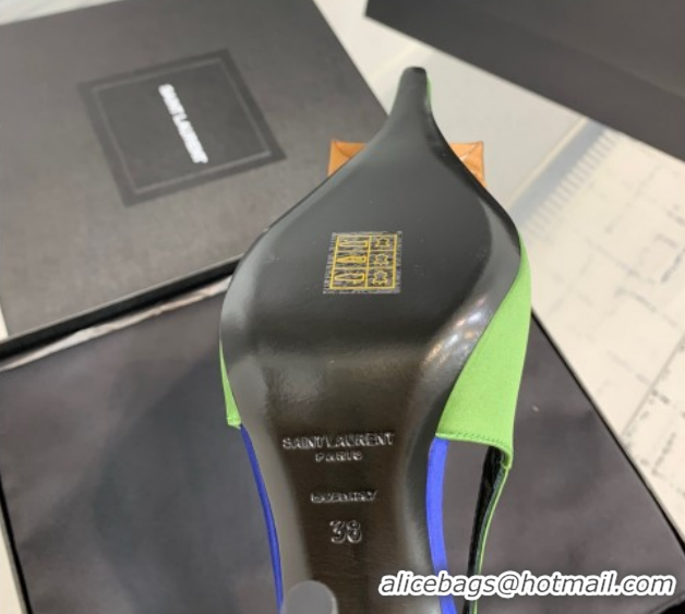 Most Popular Saint Laurent AMALIA Heel Slingbacks Pump 11cm in Satin Crepe with Square Rose Light Green 1212099