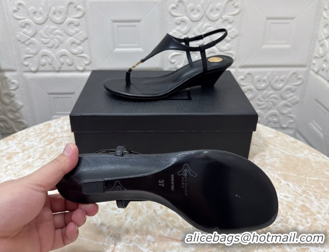 Most Popular Saint Laurent Cassandra Wedge Thong Sandals 3.5cm in Calfskin Black 0825120