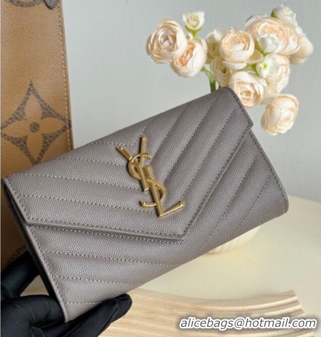 Most Popular Saint Laurent Envelope Flap Long Wallet in Grained Leather 437469 Brown 2025