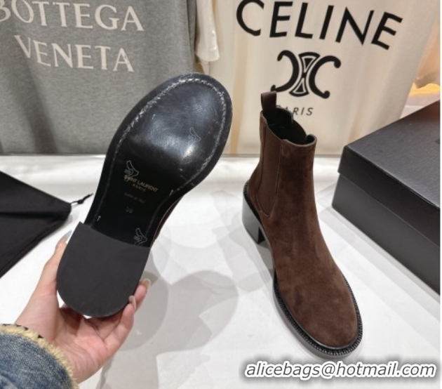 > Shoes Plaza > Yves Saint Laurent Shoes > Unique Style Saint Laurent Vincent Heel Chelsea Booties 6cm in Suede Dark Brown 1213055