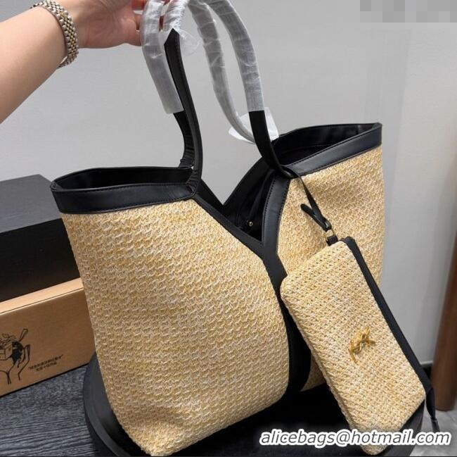 Top Quality Saint Laurent Y Tote Bag in Straw 817602 Beige/Black 2025