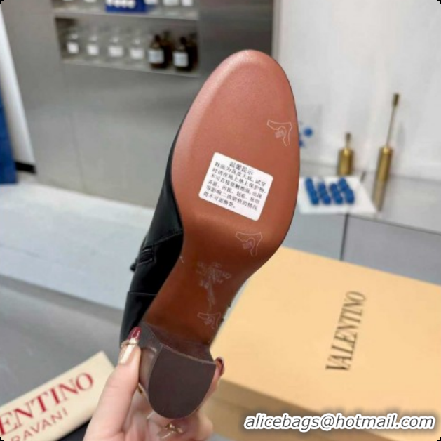 Most Popular Valentino PATTIE Heel Booties 8cm in Calfskin Leather with Buckle Black 51215070