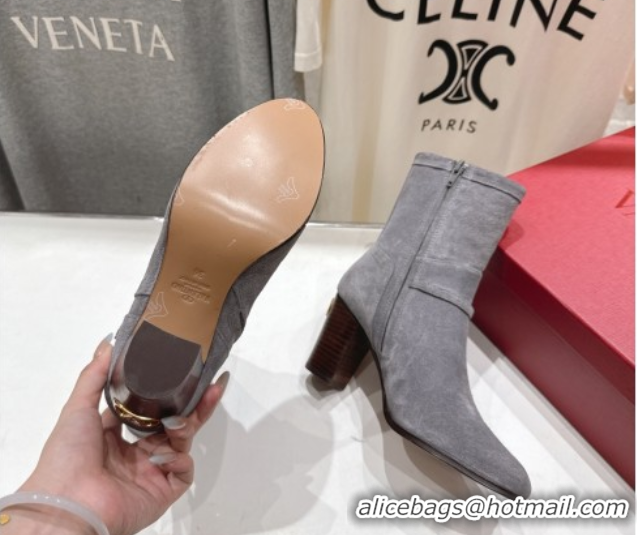 Luxury Cheap Valentino Suede Heel Ankle Boots 7.5cm with Buckle Grey 1028035